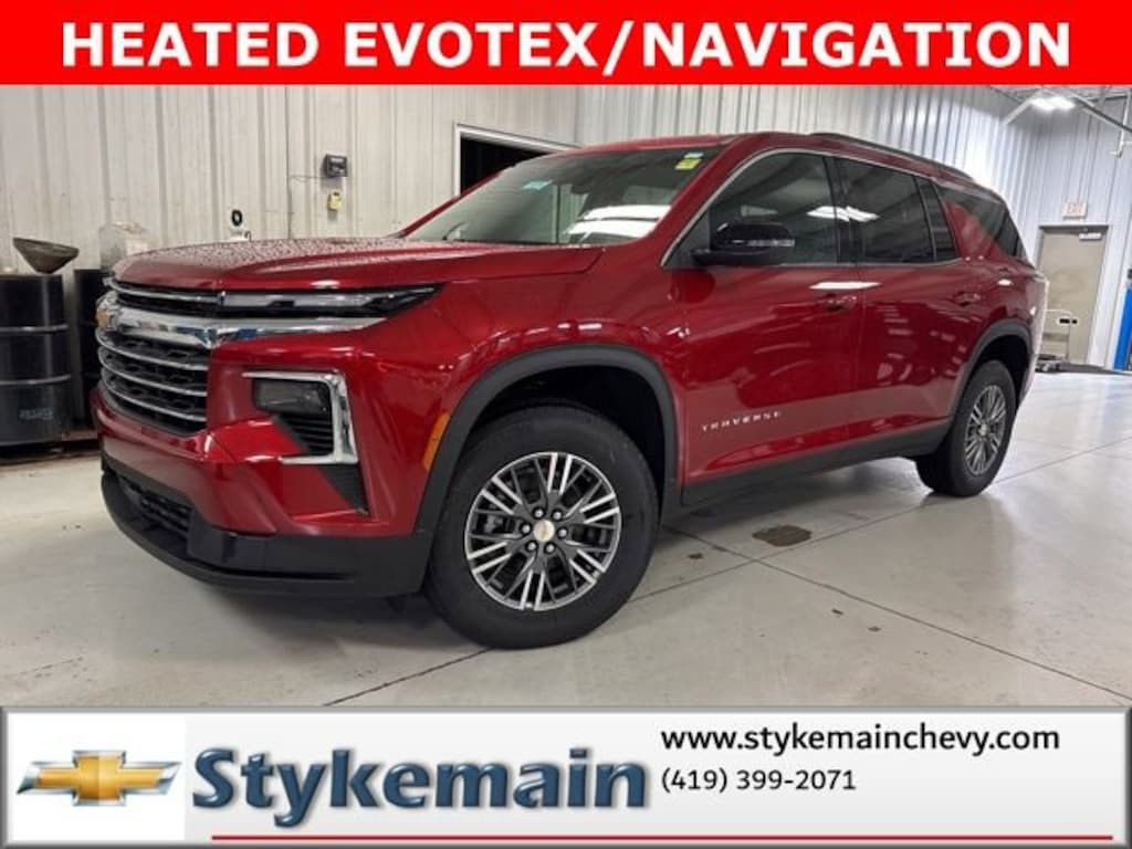 2026 Chevrolet Traverse LT ** CALL TODAY 419-399-2071 **, ** ASK US HOW YOU CAN EARN $50 JUST TO TEST THIS VEHICLE! **, ** WI-FI HOTSPOT **, ** BLUETOOTH **, ** HEATED STEERING WHEEL **, ** HEATED LEATHER SEATS **, ** APPLE CARPLAY/ANDROID AUTO **, ** SMARTPHONE INTEGRATION **, ** REMOTE START **, ** NAVIGATION **, ** POWER REAR LIFTGATE **, Traverse LT 1LT HEATED EVOTEX NAVIGATION, 4D Sport Utility, FWD, Radiant Red Tintcoat, Navigation System, Preferred Equipment Group 1LT.