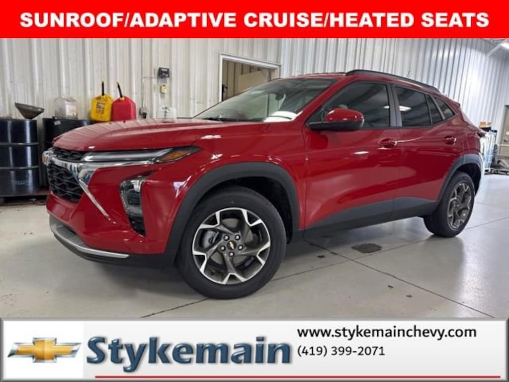 2026 Chevrolet Trax LT ** CALL TODAY 419-399-2071 **, ** ASK US HOW YOU CAN EARN $50 JUST TO TEST THIS VEHICLE! **, ** SUNROOF **, ** WI-FI HOTSPOT **, ** ADAPTIVE CRUISE CONTROL **, ** BLUETOOTH **, ** HEATED STEERING WHEEL **, ** HEATED CLOTH SEATS **, ** APPLE CARPLAY/ANDROID AUTO **, ** SMARTPHONE INTEGRATION **, ** REMOTE START **, ** NAVIGATION **, ** FUEL SAVER **, Trax LT SUNROOF ADAPTIVE CRUISE HEATED SEATS AND STEERING, 4D Sport Utility, FWD, Apex Red, Jet Black/Gray w/Blue Accents w/Cloth Seat Trim, Adaptive Cruise Control, Driver Confidence Package, Front Doors Keyless Open, Heated Driver and Front Passenger Seats, Heated Power-Adjustable Outside Mirrors, Heated Steering Wheel, Lane Change Alert with Side Blind Zone Alert, LT Convenience Package, Power Sliding Glass Sunroof with Manual Shade, Preferred Equipment Group 1LT, Rear Cross Traffic Alert, Rear Park Assist, Sunroof Package, Wireless Charging, Wrapped Steering Wheel. Awards: