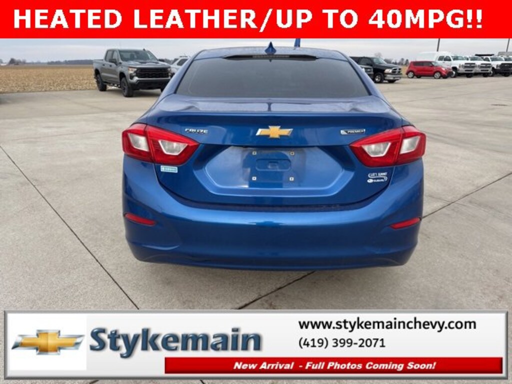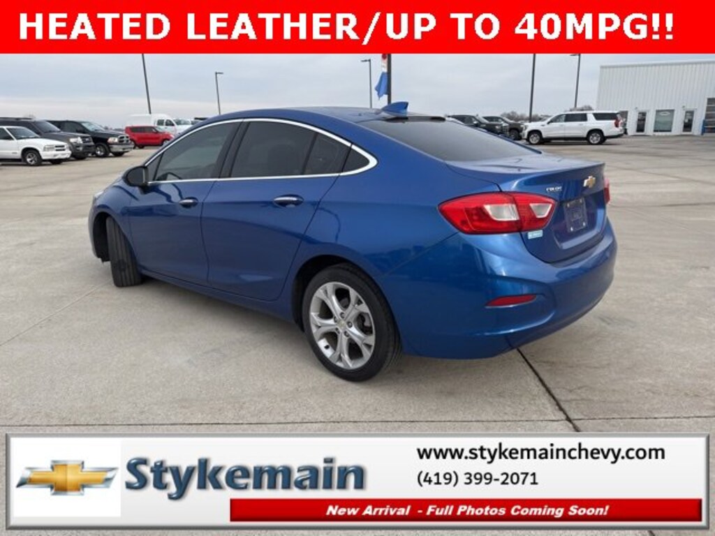 2016 Chevrolet Cruze Premier HEATED LEATHER Kinetic Blue Metallic ** CALL TODAY 419-399-2071 **, ** USB ADAPTER **, ** BLUETOOTH **, ** HEATED LEATHER SEATS **, ** REMOTE START **, ** ASK US HOW YOU CAN EARN $50 JUST TO TEST THIS VEHICLE! **, *** COMPLEMENTARY 3 MONTH - 3,000 MILE POWERTRAIN WARRANTY ***, Cruze Premier HEATED LEATHER, 4D Sedan, Kinetic Blue Metallic, Preferred Equipment Group 1SF. TEST DRIVE ANY USED VEHICLE AND RECEIVE $50. DRIVE A VEHICLE GET $50.NO PRESSURE TO PURCHASE. ACT NOW. ONE GIFT CARD PER HOUSEHOLD PER YEAR.CALL 419-399-2071 TODAY FOR YOUR APPOINTMENT.GO TO WWW.STYKEMAINCHEVY.COM AND FILL OUT YOUR TEST DRIVE FORM. MUST BRING PRINTED FORM WITH YOU TO RECEIVE $50. DON'T FORGET... MOST OF OUR PREOWNED VEHICLES COME WITH A 3 MONTH - 3,000 WARRANTY... FREE OF CHARGE. CONTACT US TO FIND OUT IF THIS ONE QUALIFIES.Awards:* 2016 KBB.com 10 Most Comfortable Cars Under $30,000Stykemain Chevrolet in Paulding, OH is closer than you think. Just take exit 13 off new US 24 to US 127 South. Driving time to Stykemain Chevrolet: Defiance = 15 minutes, Van Wert = 18 minutes, Bryan = 22 minutes, Lima = 42 minutes. Ft Wayne = ONLY 39 MINUTES! COME CHECK US OUT. Visit us online at STYKEMAINCHEVY.COM Proudly serving: Paulding, Defiance, Fort Wayne, Van Wert, Findlay, Toledo, Delphos, Detroit, Indianapolis, South Bend, Elkhart, and all of greater Ohio, Michigan and Indiana.