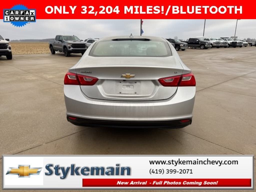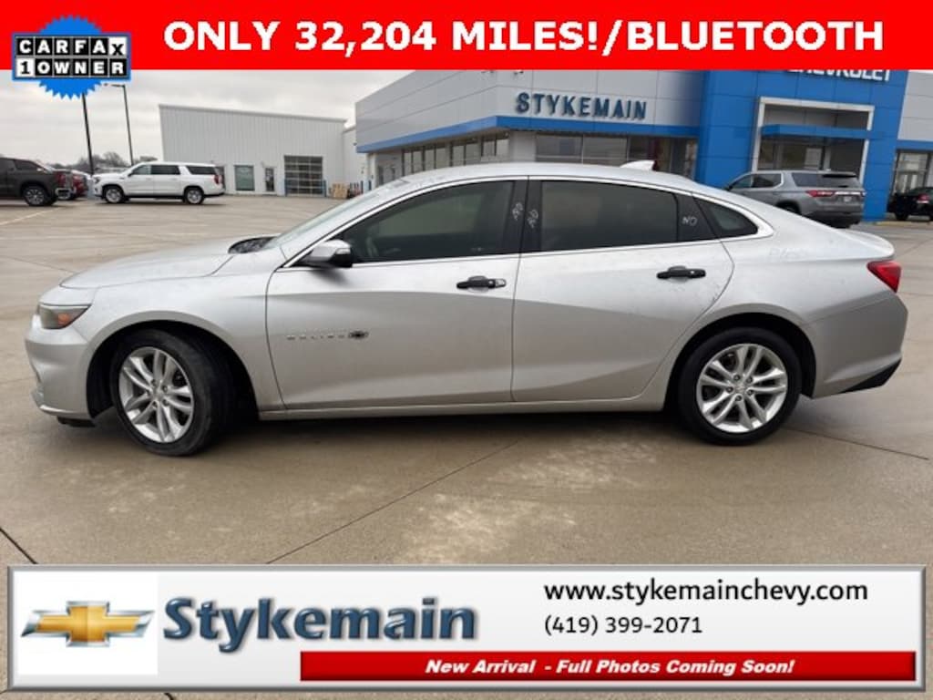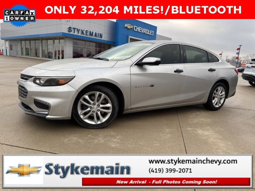 2017 Chevrolet Malibu LT 1LT BLUETOOTH Silver Ice Metallic ** CALL TODAY 419-399-2071 **, ** BLUETOOTH **, ** APPLE CARPLAY/ANDROID AUTO **, ** USB ADAPTER **, Malibu LT 1LT BLUETOOTH, 4D Sedan, Silver Ice Metallic, Jet Black w/Premium Cloth Seat Trim, Preferred Equipment Group 1LT. TEST DRIVE ANY USED VEHICLE AND RECEIVE $50. DRIVE A VEHICLE GET $50.NO PRESSURE TO PURCHASE. ACT NOW. ONE GIFT CARD PER HOUSEHOLD PER YEAR.CALL 419-399-2071 TODAY FOR YOUR APPOINTMENT.GO TO WWW.STYKEMAINCHEVY.COM AND FILL OUT YOUR TEST DRIVE FORM. MUST BRING PRINTED FORM WITH YOU TO RECEIVE $50. DON'T FORGET... MOST OF OUR PREOWNED VEHICLES COME WITH A 3 MONTH - 3,000 WARRANTY... FREE OF CHARGE. CONTACT US TO FIND OUT IF THIS ONE QUALIFIES.Awards:* 2017 IIHS Top Safety Pick with optional front crash prevention * 2017 KBB.com Best Family Sedans * 2017 KBB.com 10 Best Sedans Under $25,000 * 2017 KBB.com 10 Most Comfortable Cars Under $30,000 * 2017 KBB.com 10 Most Awarded BrandsStykemain Chevrolet in Paulding, OH is closer than you think. Just take exit 13 off new US 24 to US 127 South. Driving time to Stykemain Chevrolet: Defiance = 15 minutes, Van Wert = 18 minutes, Bryan = 22 minutes, Lima = 42 minutes. Ft Wayne = ONLY 39 MINUTES! COME CHECK US OUT. Visit us online at STYKEMAINCHEVY.COM Proudly serving: Paulding, Defiance, Fort Wayne, Van Wert, Findlay, Toledo, Delphos, Detroit, Indianapolis, South Bend, Elkhart, and all of greater Ohio, Michigan and Indiana.