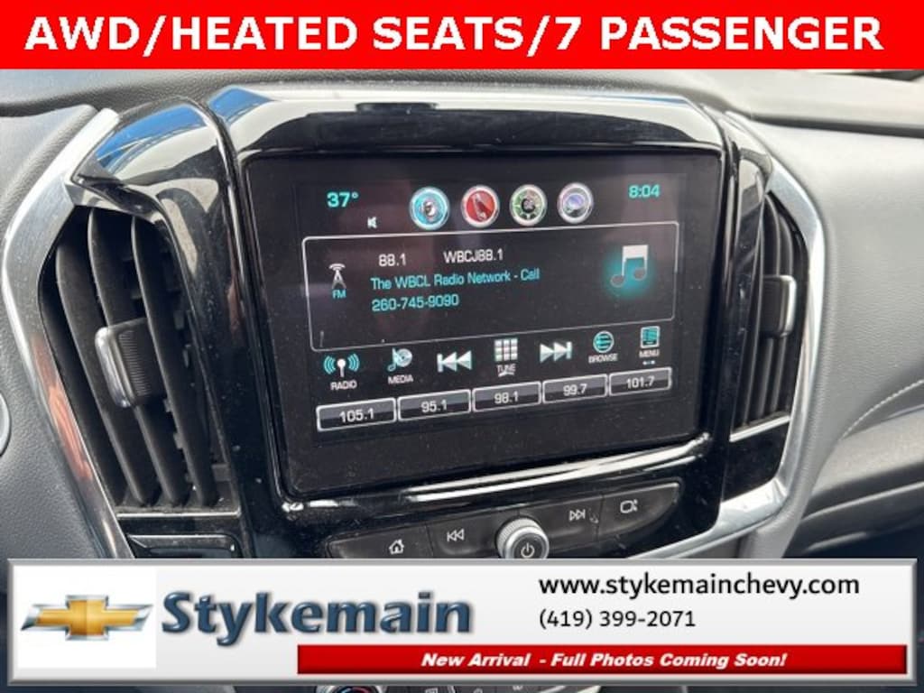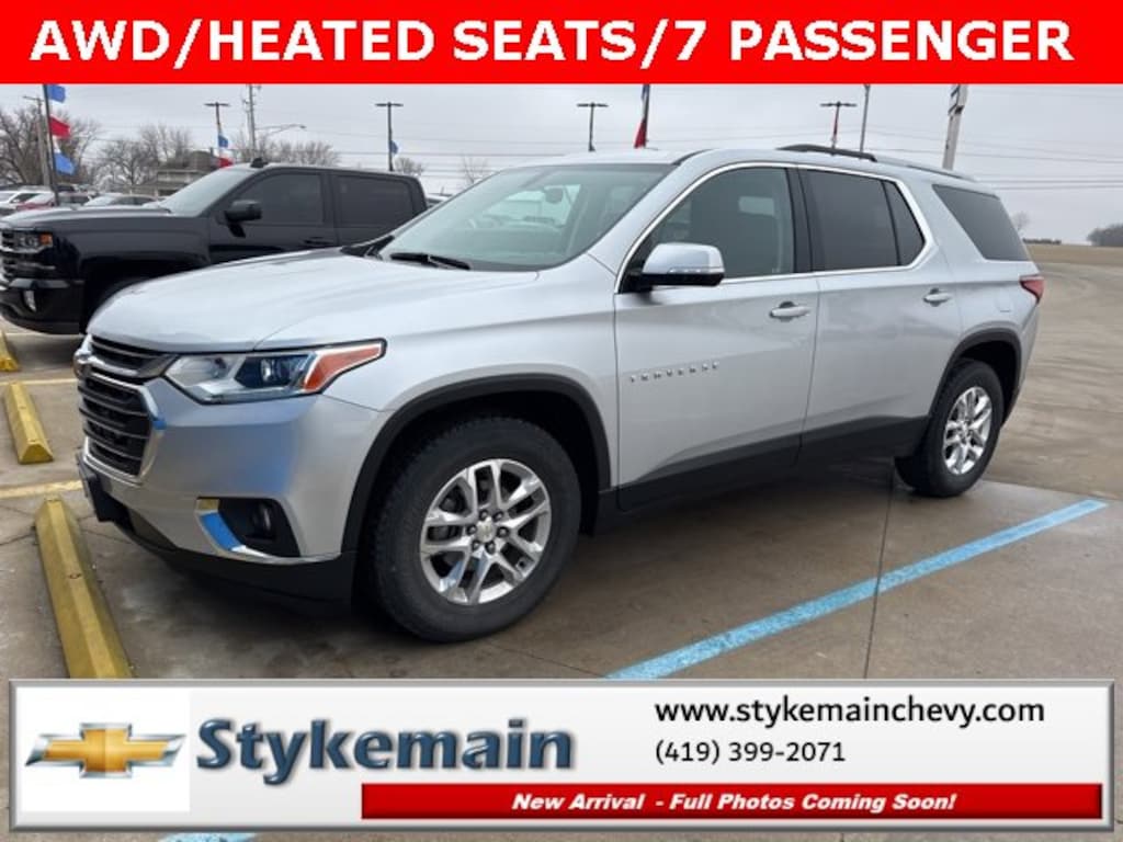 2018 Chevrolet Traverse LT Cloth w/1LT AWD HEATED SEATS Silver Ice Metallic ** CALL TODAY 419-399-2071 **, ** ASK US HOW YOU CAN EARN $50 JUST TO TEST THIS VEHICLE! **, ** BLUETOOTH **, ** HEATED CLOTH SEATS **, ** APPLE CARPLAY/ANDROID AUTO **, ** SMARTPHONE INTEGRATION **, ** REMOTE START **, ** AWD **, ** POWER REAR LIFTGATE **, ** CLEAN VEHICLE HISTORY...NO ACCIDENTS **, *** COMPLEMENTARY 3 MONTH - 3,000 MILE POWERTRAIN WARRANTY ***, Traverse LT Cloth w/1LT AWD HEATED SEATS, 4D Sport Utility, 3.6L V6 SIDI VVT, AWD, Heavy-Duty Cooling System, Preferred Equipment Group 1LT, Trailering Equipment. TEST DRIVE ANY USED VEHICLE AND RECEIVE $50. DRIVE A VEHICLE GET $50.NO PRESSURE TO PURCHASE. ACT NOW. ONE GIFT CARD PER HOUSEHOLD PER YEAR.CALL 419-399-2071 TODAY FOR YOUR APPOINTMENT.GO TO WWW.STYKEMAINCHEVY.COM AND FILL OUT YOUR TEST DRIVE FORM. MUST BRING PRINTED FORM WITH YOU TO RECEIVE $50. DON'T FORGET... MOST OF OUR PREOWNED VEHICLES COME WITH A 3 MONTH - 3,000 WARRANTY... FREE OF CHARGE. CONTACT US TO FIND OUT IF THIS ONE QUALIFIES.Awards:* JD Power Automotive Performance, Execution and Layout (APEAL) Study * 2018 KBB.com Best Family Cars * 2018 KBB.com 10 Most Affordable 3-Row Vehicles * 2018 KBB.com 10 Most Awarded BrandsStykemain Chevrolet in Paulding, OH is closer than you think. Just take exit 13 off new US 24 to US 127 South. Driving time to Stykemain Chevrolet: Defiance = 15 minutes, Van Wert = 18 minutes, Bryan = 22 minutes, Lima = 42 minutes. Ft Wayne = ONLY 39 MINUTES! COME CHECK US OUT. Visit us online at STYKEMAINCHEVY.COM Proudly serving: Paulding, Defiance, Fort Wayne, Van Wert, Findlay, Toledo, Delphos, Detroit, Indianapolis, South Bend, Elkhart, and all of greater Ohio, Michigan and Indiana.
