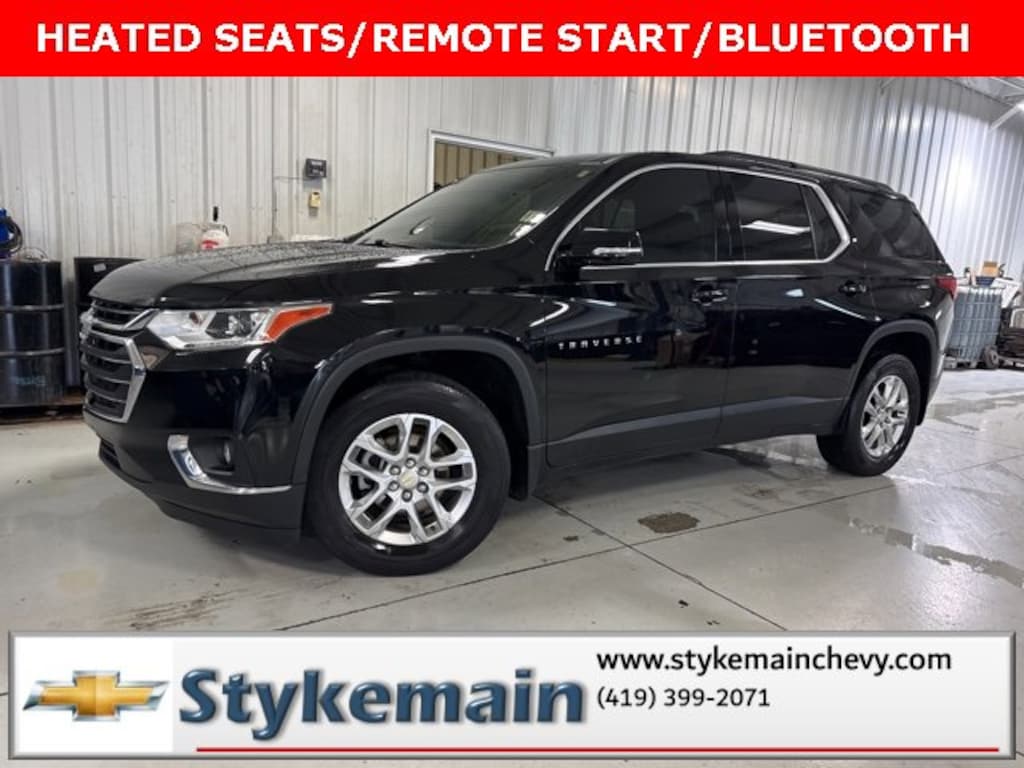 2019 Chevrolet Traverse LT Cloth w/1LT HEATED SEATS TOWING PKG Mosaic Black Metallic ** CALL TODAY 419-399-2071 **, ** ASK US HOW YOU CAN EARN $50 JUST TO TEST THIS VEHICLE! **, ** BLUETOOTH **, ** HEATED CLOTH SEATS **, ** APPLE CARPLAY/ANDROID AUTO **, ** REMOTE START **, ** POWER REAR LIFTGATE **, ** CLEAN VEHICLE HISTORY...NO ACCIDENTS **, *** COMPLEMENTARY 3 MONTH - 3,000 MILE POWERTRAIN WARRANTY ***, ** USB ADAPTER **, Traverse LT Cloth w/1LT HEATED SEATS TOWING PKG, 4D Sport Utility, 3.6L V6 SIDI VVT, Mosaic Black Metallic, 4.2 Multi-Color Enhanced Driver Instrument Display, Convenience & Driver Confidence Package, Front License Plate Bracket Mounting Package, Heated Driver & Front Passenger Seats, Heavy-Duty Cooling System, Lane Change Alert w/Side Blind Zone Alert, Preferred Equipment Group 1LT, Radio: Chevrolet Infotainment AM/FM w/8 Screen, Rear Cross Traffic Alert, Rear Park Assist w/Audible Warning, Rear Power Liftgate, Remote Start, SiriusXM Radio, Trailering Equipment, Universal Home Remote. TEST DRIVE ANY USED VEHICLE AND RECEIVE $50. DRIVE A VEHICLE GET $50.NO PRESSURE TO PURCHASE. ACT NOW. ONE GIFT CARD PER HOUSEHOLD PER YEAR.CALL 419-399-2071 TODAY FOR YOUR APPOINTMENT.GO TO WWW.STYKEMAINCHEVY.COM AND FILL OUT YOUR TEST DRIVE FORM. MUST BRING PRINTED FORM WITH YOU TO RECEIVE $50. DON'T FORGET... MOST OF OUR PREOWNED VEHICLES COME WITH A 3 MONTH - 3,000 WARRANTY... FREE OF CHARGE. CONTACT US TO FIND OUT IF THIS ONE QUALIFIES.Awards:* 2019 KBB.com 12 Best Family CarsStykemain Chevrolet in Paulding, OH is closer than you think. Just take exit 13 off new US 24 to US 127 South. Driving time to Stykemain Chevrolet: Defiance = 15 minutes, Van Wert = 18 minutes, Bryan = 22 minutes, Lima = 42 minutes. Ft Wayne = ONLY 39 MINUTES! COME CHECK US OUT. Visit us online at STYKEMAINCHEVY.COM Proudly serving: Paulding, Defiance, Fort Wayne, Van Wert, Findlay, Toledo, Delphos, Detroit, Indianapolis, South Bend, Elkhart, and all of greater Ohio, Michigan and Indiana.