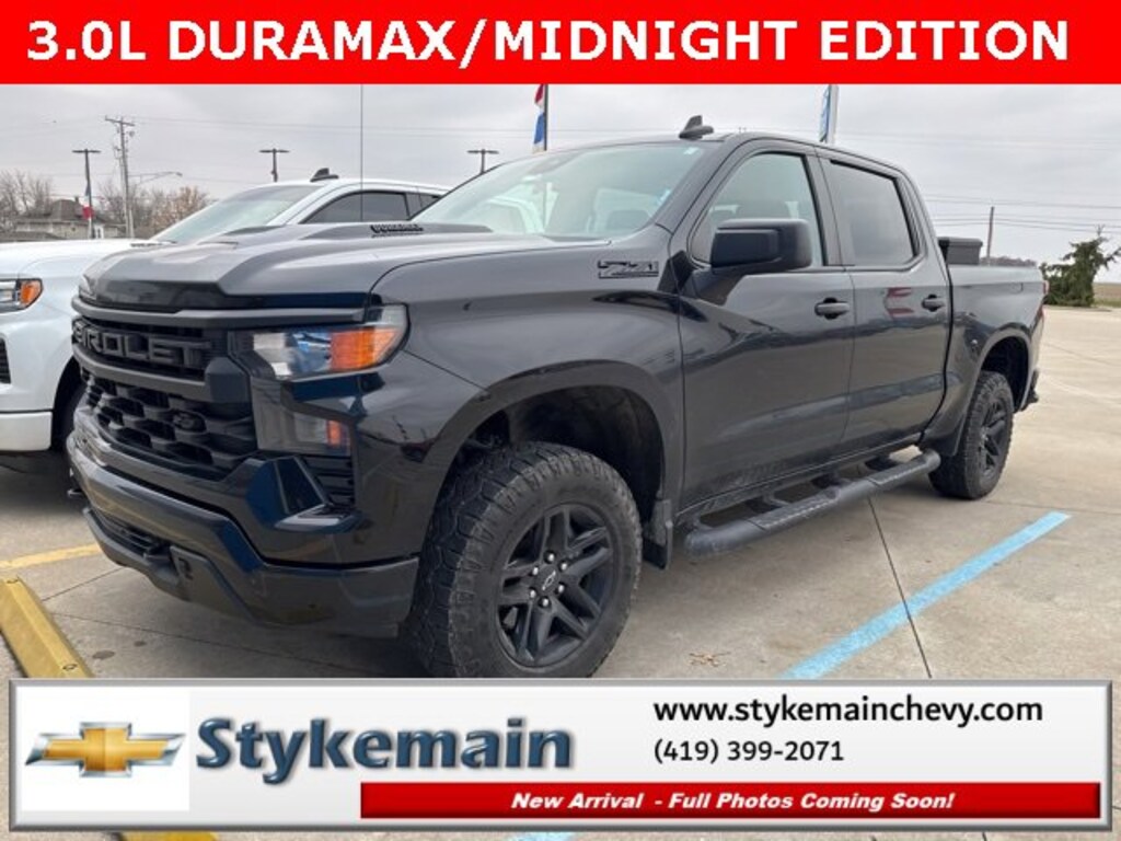 2022 Chevrolet Silverado 1500 Custom Trail Boss 3.0L DURAMAX MIDNIGHT EDITION Black ** CALL TODAY 419-399-2071 **, ** WI FI **, ** USB ADAPTER **, ** BLUETOOTH **, ** HEATED CLOTH SEATS **, ** REMOTE START **, ** 4WD **, ** 3.0L DURAMAX **, ** CLEAN VEHICLE HISTORY...NO ACCIDENTS **, ** REMAINDER OF FACTORY WARRANTY **, ** ASK US HOW YOU CAN EARN $50 JUST TO TEST THIS VEHICLE! **, Silverado 1500 Custom Trail Boss 3.0L DURAMAX MIDNIGHT EDITION, 4D Crew Cab, 3.0L I6, 4WD, Jet Black w/Cloth Seat Trim, 10-Way Power Driver Seat w/Lumbar, 120-Volt Bed Mounted Power Outlet, 120-Volt Instrument Panel Power Outlet, 3.5 Monochromatic Display Driver Info Center, All-Weather Floor Liner (LPO) (AAK), Auto-Locking Rear Differential, Black Dual Exhaust Tips, Bluetooth® For Phone, Chevrolet Connected Access Capable, Chevytec Spray-On Black Bedliner, Color-Keyed Carpeting Floor Covering, Compass, Custom Convenience Package, Deep-Tinted Glass, Dual Rear USB Ports (Charge Only), Electric Rear-Window Defogger, Electrical Steering Column Lock, Electronic Cruise Control, EZ Lift Power Lock & Release Tailgate, Front Frame-Mounted Black Recovery Hooks, Front Rubberized Vinyl Floor Mats, HD Rear Vision Camera, Heavy-Duty Air Filter, Hill Descent Control, Hitch Guidance, LED Cargo Area Lighting, Manual Tilt Wheel Steering Column, Midnight Edition, OnStar & Chevrolet Connected Services Capable, Performance Red Recovery Hooks, Power Front Windows w/Driver Express Up/Down, Power Front Windows w/Passenger Express Down, Power Rear Windows w/Express Down, Preferred Equipment Group 2CX, Rear 60/40 Folding Bench Seat (Folds Up), Rear Rubberized-Vinyl Floor Mats, Remote Keyless Entry, Remote Vehicle Starter System, Silver-Hammer Interior Trim Kit (LPO), SiriusXM Radio, Standard Tailgate, Suspension Package, Theft Deterrent System (Unauthorized Entry), Trailering Package, Wi-Fi Hot Spot Capable, Wireless Phone Projection. TEST DRIVE ANY USED VEHICLE AND RECEIVE $50. DRIVE A VEHICLE GET $50.NO PRESSURE TO PURCHASE. ACT NOW. ONE GIFT CARD PER HOUSEHOLD PER YEAR.CALL 419-399-2071 TODAY FOR YOUR APPOINTMENT.GO TO WWW.STYKEMAINCHEVY.COM AND FILL OUT YOUR TEST DRIVE FORM. MUST BRING PRINTED FORM WITH YOU TO RECEIVE $50. DON'T FORGET... MOST OF OUR PREOWNED VEHICLES COME WITH A 3 MONTH - 3,000 WARRANTY... FREE OF CHARGE. CONTACT US TO FIND OUT IF THIS ONE QUALIFIES.