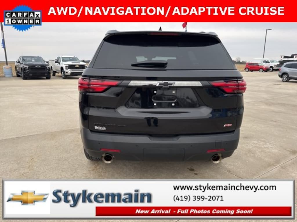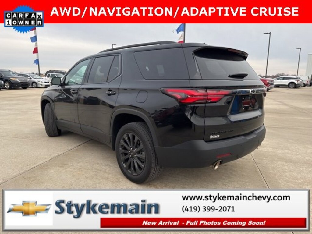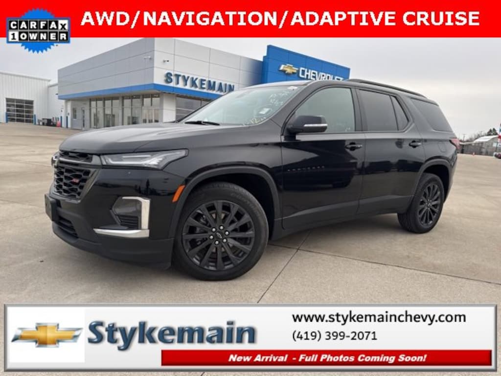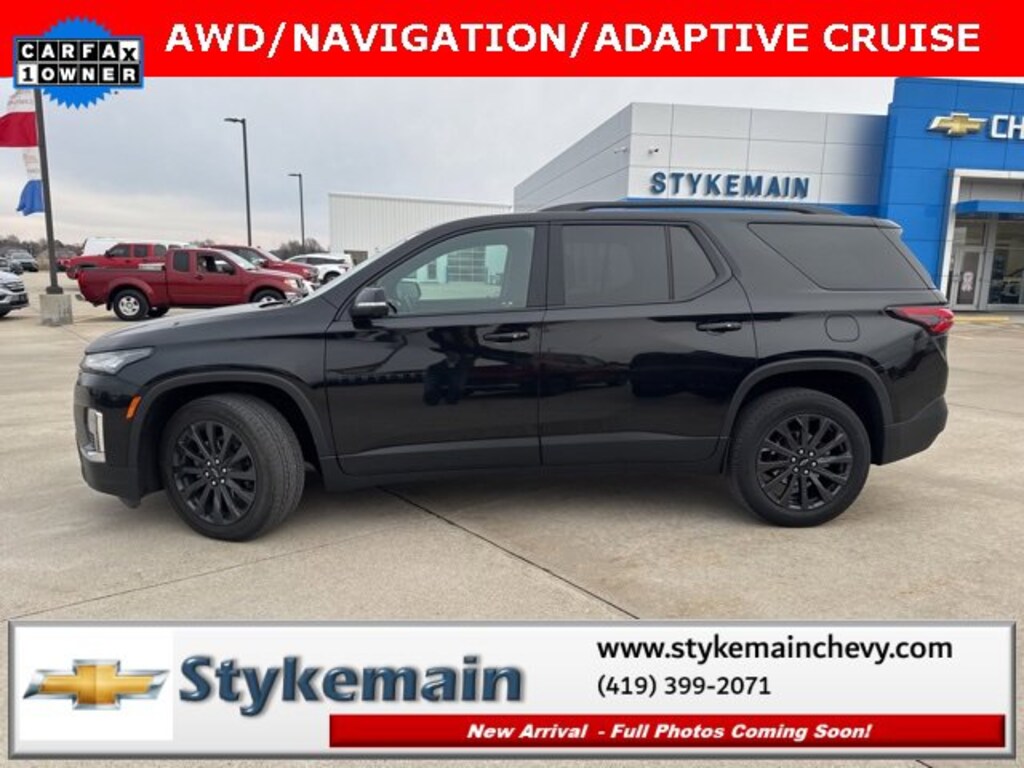2022 Chevrolet Traverse RS AWD NAVIGATION ADAPTIVE CRUISE Mosaic Black Metallic ** CALL TODAY 419-399-2071 **, ** ADAPTIVE CRUISE CONTROL **, ** BLUETOOTH **, ** HEATED STEERING WHEEL **, ** HEATED LEATHER SEATS **, ** APPLE CARPLAY/ANDROID AUTO **, ** REMOTE START **, ** NAVIGATION **, ** 7 PASSENGER **, ** AWD **, ** POWER REAR LIFTGATE **, ** CLEAN VEHICLE HISTORY...NO ACCIDENTS **, ** WI FI **, ** USB ADAPTER **, Traverse RS AWD NAVIGATION ADAPTIVE CRUISE, 4D Sport Utility, 3.6L V6 SIDI VVT, AWD, Mosaic Black Metallic. TEST DRIVE ANY USED VEHICLE AND RECEIVE $50. DRIVE A VEHICLE GET $50.NO PRESSURE TO PURCHASE. ACT NOW. ONE GIFT CARD PER HOUSEHOLD PER YEAR.CALL 419-399-2071 TODAY FOR YOUR APPOINTMENT.GO TO WWW.STYKEMAINCHEVY.COM AND FILL OUT YOUR TEST DRIVE FORM. MUST BRING PRINTED FORM WITH YOU TO RECEIVE $50. DON'T FORGET... MOST OF OUR PREOWNED VEHICLES COME WITH A 3 MONTH - 3,000 WARRANTY... FREE OF CHARGE. CONTACT US TO FIND OUT IF THIS ONE QUALIFIES.