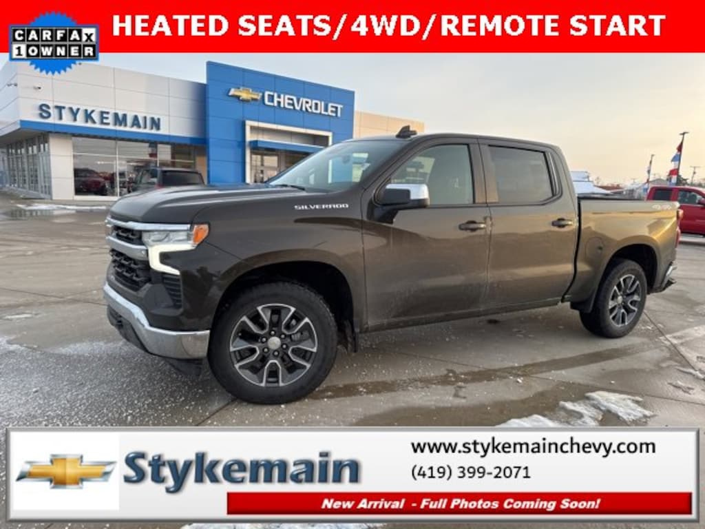 New Price! 2023 Chevrolet Silverado 1500 LT CREW HEATED SEATS Harvest Bronze Metallic ** CALL TODAY 419-399-2071 **, ** WI FI **, ** USB ADAPTER **, ** BLUETOOTH **, ** HEATED CLOTH SEATS **, ** REMOTE START **, ** 4WD **, ** CLEAN VEHICLE HISTORY...NO ACCIDENTS **, ** ONE OWNER **, ** REMAINDER OF FACTORY WARRANTY **, ** ASK US HOW YOU CAN EARN $50 JUST TO TEST THIS VEHICLE! **, Silverado 1500 LT CREW HEATED SEATS, 4D Crew Cab, 8-Speed Automatic, 4WD, Jet Black w/Cloth Seat Trim, 10-Way Power Driver Seat w/Lumbar, 12.3 Multicolor Reconfigurable Digital Display, 120-Volt Bed Mounted Power Outlet, 120-Volt Instrument Panel Power Outlet, All-Star Edition, Auto-Locking Rear Differential, Bluetooth® For Phone, Chevrolet Connected Access Capable, Chrome Mirror Caps, Color-Keyed Carpeting Floor Covering, Compass, Convenience Package, Deep-Tinted Glass, Dual Rear USB Ports (Charge Only), Dual-Zone Automatic Climate Control, Electrical Steering Column Lock, Electronic Cruise Control, Front Frame-Mounted Black Recovery Hooks, HD Rear Vision Camera, Heated Driver & Front Outboard Passenger Seats, Heated Steering Wheel, High Capacity Suspension Package, Hitch Guidance, Keyless Open & Start, LED Cargo Area Lighting, OnStar & Chevrolet Connected Services Capable, Power Front Windows w/Driver Express Up/Down, Power Front Windows w/Passenger Express Down, Power Rear Windows w/Express Down, Preferred Equipment Group 2FL, Rear 60/40 Folding Bench Seat (Folds Up), SiriusXM w/360L, Steering Wheel Audio Controls, Trailering Package, Wi-Fi Hot Spot Capable, Wireless Phone Projection, Wrapped Steering Wheel. TEST DRIVE ANY USED VEHICLE AND RECEIVE $50. DRIVE A VEHICLE GET $50.NO PRESSURE TO PURCHASE. ACT NOW. ONE GIFT CARD PER HOUSEHOLD PER YEAR.CALL 419-399-2071 TODAY FOR YOUR APPOINTMENT.GO TO WWW.STYKEMAINCHEVY.COM AND FILL OUT YOUR TEST DRIVE FORM. MUST BRING PRINTED FORM WITH YOU TO RECEIVE $50. DON'T FORGET... MOST OF OUR PREOWNED VEHICLES COME WITH A 3 MONTH - 3,000 WARRANTY... FREE OF CHARGE. CONTACT US TO FIND OUT IF THIS ONE QUALIFIES.