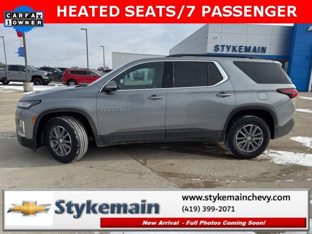 2023 Chevrolet Traverse LT 1LT HEATED SEATS 7 PASSENGER Sterling Gray Metallic ** CALL TODAY 419-399-2071 **, ** WI FI **, ** USB ADAPTER **, ** BLUETOOTH **, ** HEATED CLOTH SEATS **, ** APPLE CARPLAY/ANDROID AUTO **, ** WIRELESS APPLE CARPLAY/ANDROID AUTO **, ** REMOTE START **, ** 7 PASSENGER **, ** POWER REAR LIFTGATE **, ** CLEAN VEHICLE HISTORY...NO ACCIDENTS **, ** REMAINDER OF FACTORY WARRANTY **, ** ASK US HOW YOU CAN EARN $50 JUST TO TEST THIS VEHICLE! **, Traverse LT 1LT HEATED SEATS 7 PASSENGER, 4D Sport Utility, 3.6L V6 SIDI VVT, Sterling Gray Metallic, 4.2 Multi-Color Enhanced Driver Instrument Display, Convenience & Driver Confidence Package, Heated Driver & Front Passenger Seats, Preferred Equipment Group 1LT, Radio: Chevrolet Infotainment 3 Plus System, Rear Power Liftgate, Remote Start, SiriusXM w/360L, Universal Home Remote. TEST DRIVE ANY USED VEHICLE AND RECEIVE $50. DRIVE A VEHICLE GET $50.NO PRESSURE TO PURCHASE. ACT NOW. ONE GIFT CARD PER HOUSEHOLD PER YEAR.CALL 419-399-2071 TODAY FOR YOUR APPOINTMENT.GO TO WWW.STYKEMAINCHEVY.COM AND FILL OUT YOUR TEST DRIVE FORM. MUST BRING PRINTED FORM WITH YOU TO RECEIVE $50. DON'T FORGET... MOST OF OUR PREOWNED VEHICLES COME WITH A 3 MONTH - 3,000 WARRANTY... FREE OF CHARGE. CONTACT US TO FIND OUT IF THIS ONE QUALIFIES.