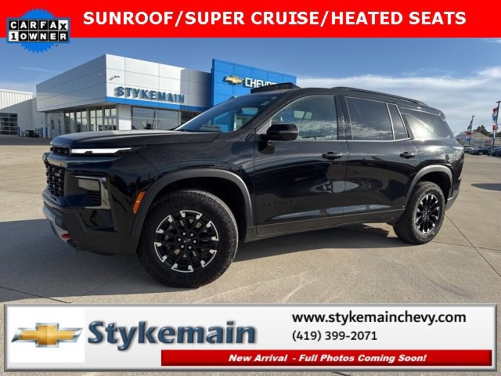 2024 Chevrolet Traverse Z71 SUPER CRUISE SUNROOF HEATED SEATS Mosaic Black Metallic ** CALL TODAY 419-399-2071 **, ** WI FI **, ** USB ADAPTER **, ** BLUETOOTH **, ** SUPER CRUISE **, ** HEATED CLOTH SEATS **, ** WIRELESS CHARGING **, ** APPLE CARPLAY/ANDROID AUTO **, ** WIRELESS APPLE CARPLAY/ANDROID AUTO **, ** REMOTE START **, ** SUNROOF **, ** NAVIGATION **, ** 7 PASSENGER **, ** AWD **, ** POWER REAR LIFTGATE **, ** CLEAN VEHICLE HISTORY...NO ACCIDENTS **, ** ONE OWNER **, ** REMAINDER OF FACTORY WARRANTY **, ** SERVICE RECORDS AVAILABLE **, ** ASK US HOW YOU CAN EARN $50 JUST TO TEST THIS VEHICLE! **, Traverse Z71 SUPER CRUISE SUNROOF HEATED SEATS, 4D Sport Utility, AWD, Mosaic Black Metallic, Bose Premium 10-Speaker Audio System Feature, Driver Attention Assist, Enhanced Automatic Parking Assist, Enhanced Driving Package, Navigation System, Preferred Equipment Group 2Z7, Rear Camera Mirror, Super Cruise. TEST DRIVE ANY USED VEHICLE AND RECEIVE $50. DRIVE A VEHICLE GET $50.NO PRESSURE TO PURCHASE. ACT NOW. ONE GIFT CARD PER HOUSEHOLD PER YEAR.CALL 419-399-2071 TODAY FOR YOUR APPOINTMENT.GO TO WWW.STYKEMAINCHEVY.COM AND FILL OUT YOUR TEST DRIVE FORM. MUST BRING PRINTED FORM WITH YOU TO RECEIVE $50. DON'T FORGET... MOST OF OUR PREOWNED VEHICLES COME WITH A 3 MONTH - 3,000 WARRANTY... FREE OF CHARGE. CONTACT US TO FIND OUT IF THIS ONE QUALIFIES.
