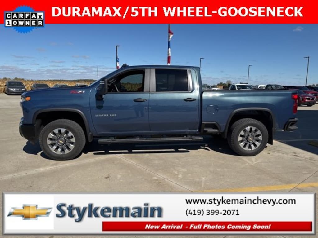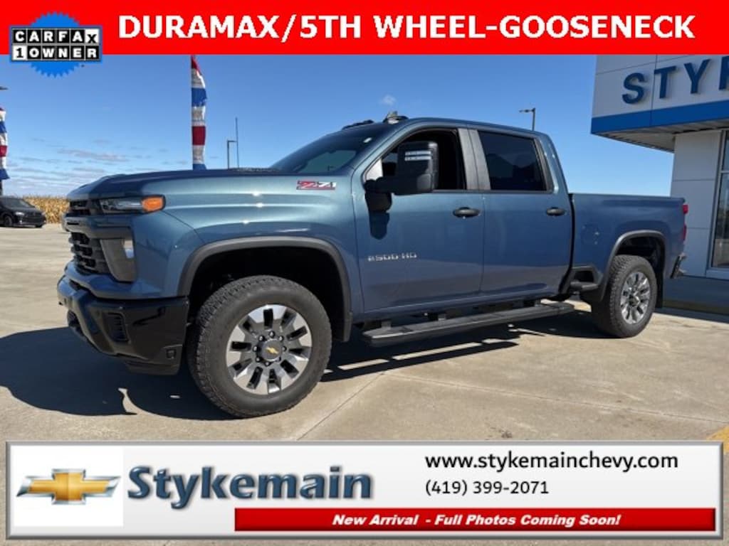 2025 Chevrolet Silverado 2500HD Custom DURAMAX 5TH WHEEL/GOOSENECK PKG Lakeshore Blue Metallic ** CALL TODAY 419-399-2071 **, ** WI FI **, ** USB ADAPTER **, ** BLUETOOTH **, ** APPLE CARPLAY/ANDROID AUTO **, ** REMOTE START **, ** 4WD **, ** DIESEL **, ** DURAMAX **, ** REMAINDER OF FACTORY WARRANTY **, ** ASK US HOW YOU CAN EARN $50 JUST TO TEST THIS VEHICLE! **, Silverado 2500HD Custom DURAMAX 5TH WHEEL/GOOSENECK PKG, 4D Crew Cab, Duramax 6.6L V8 Turbodiesel, 10-Speed Automatic, 4WD, Lakeshore Blue Metallic, 10-Way Power Driver Seat Adjuster w/Lumbar, 120-Volt Bed Mounted Power Outlet, 120-Volt Interior Power Outlet, 170 Amp Alternator, 2-Speed Electronic Shift Transfer Case, 220 Amp Alternator, 3.5 Diagonal Monochromatic Display DIC, Auto-Dimming Inside Rear-View Mirror, Black Chevytec Spray-On Bedliner, Black Mirror Caps, Bluetooth® For Phone, Chevrolet Connected Access Capable, Color-Keyed Carpeting Floor Covering, Compass, Custom Convenience Package, Custom Value Package, CX Safety Package, Deep-Tinted Glass, Dual Rear USB Ports (Charge Only), Electric Rear-Window Defogger, Electronic Cruise Control w/Set & Resume Speed, EZ Lift Power Lock & Release Tailgate, Front Rubberized Vinyl Floor Mats, Gooseneck/5th Wheel Prep Package, HD Rear Vision Camera, Heated & Auto-Dimming Vertical Trailering Mirrors, Heated Vertical Trailering Mirrors, Hill Descent Control, Lane Change Alert w/Side Blind Zone Alert, LED Cargo Area Lighting, Locking Tailgate, Manual Tailgate Function w/No EZ Lift, Manual Tilt-Wheel Steering Column, Off-Road Suspension, OnStar Services Capable, Power Door Locks, Power Front Windows w/Driver Express Up/Down, Power Front Windows w/Passenger Express Down, Power Rear Windows w/Express Down, Preferred Equipment Group 1CX, Push Button Start, Rear 60/40 Folding Bench Seat (Folds Up), Rear Cross Traffic Alert, Rear Rubberized Vinyl Floor Mats, Remote Keyless Entry, Remote Vehicle Starter System, SiriusXM w/360L Trial Subscription, Snow Plow Prep/Camper Package, Standard Tailgate, Suspension Package, Ultrasonic Front & Rear Park Assist, Unauthorized Entry Theft-Deterrent System, Wi-Fi Hotspot Capable, Wireless Phone Projection, Z71 Off-Road Package. TEST DRIVE ANY USED VEHICLE AND RECEIVE $50. DRIVE A VEHICLE GET $50.NO PRESSURE TO PURCHASE. ACT NOW. ONE GIFT CARD PER HOUSEHOLD PER YEAR.CALL 419-399-2071 TODAY FOR YOUR APPOINTMENT.GO TO WWW.STYKEMAINCHEVY.COM AND FILL OUT YOUR TEST DRIVE FORM. MUST BRING PRINTED FORM WITH YOU TO RECEIVE $50. DON'T FORGET... MOST OF OUR PREOWNED VEHICLES COME WITH A 3 MONTH - 3,000 WARRANTY... FREE OF CHARGE. CONTACT US TO FIND OUT IF THIS ONE QUALIFIES.