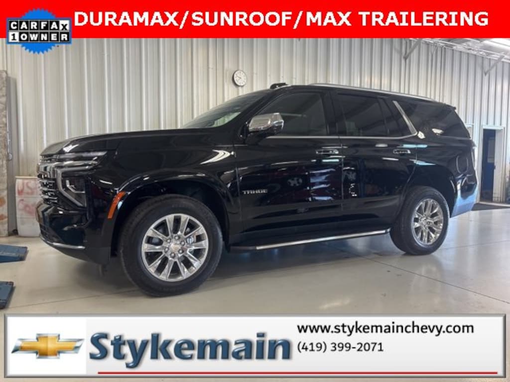 2025 Chevrolet Tahoe Premier DURAMAX SUNROOF MAX TRAILERING Black ** CALL TODAY 419-399-2071 **, ** WI FI **, ** USB ADAPTER **, ** BLUETOOTH **, ** LEATHER **, ** HEATED AND VENTILATED SEATS **, ** WIRELESS CHARGING **, ** APPLE CARPLAY/ANDROID AUTO **, ** WIRELESS APPLE CARPLAY/ANDROID AUTO **, ** REMOTE START **, ** SUNROOF **, ** NAVIGATION **, ** 7 PASSENGER **, ** 4WD **, ** POWER REAR LIFTGATE **, ** 3.0L DURAMAX **, ** CLEAN VEHICLE HISTORY...NO ACCIDENTS **, ** ONE OWNER **, ** REMAINDER OF FACTORY WARRANTY **, ** FUEL SAVER **, ** ASK US HOW YOU CAN EARN $50 JUST TO TEST THIS VEHICLE! **, Tahoe Premier DURAMAX SUNROOF MAX TRAILERING, 4D Sport Utility, 3.0L V8 Diesel Turbocharged OHV 16V LEV3-ULEV50 355hp, 4WD, Black, Jet Black w/Perforated Leather Seat Trim. TEST DRIVE ANY USED VEHICLE AND RECEIVE $50. DRIVE A VEHICLE GET $50.NO PRESSURE TO PURCHASE. ACT NOW. ONE GIFT CARD PER HOUSEHOLD PER YEAR.CALL 419-399-2071 TODAY FOR YOUR APPOINTMENT.GO TO WWW.STYKEMAINCHEVY.COM AND FILL OUT YOUR TEST DRIVE FORM. MUST BRING PRINTED FORM WITH YOU TO RECEIVE $50. DON'T FORGET... MOST OF OUR PREOWNED VEHICLES COME WITH A 3 MONTH - 3,000 WARRANTY... FREE OF CHARGE. CONTACT US TO FIND OUT IF THIS ONE QUALIFIES.