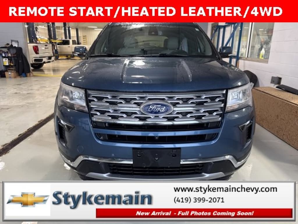 2018 Ford Explorer Limited 4WD ADAPTIVE CRUISE Blue Metallic ** CALL TODAY 419-399-2071 **, ** ASK US HOW YOU CAN EARN $50 JUST TO TEST THIS VEHICLE! **, ** WI-FI HOTSPOT **, ** BLUETOOTH **, ** HEATED LEATHER SEATS **, ** APPLE CARPLAY/ANDROID AUTO **, ** SMARTPHONE INTEGRATION **, ** REMOTE START **, ** 4WD **, ** POWER REAR LIFTGATE **, ** CLEAN VEHICLE HISTORY...NO ACCIDENTS **, *** COMPLEMENTARY 3 MONTH - 3,000 MILE POWERTRAIN WARRANTY ***, Explorer Limited 4WD ADAPTIVE CRUISE, 4D Sport Utility, 3.5L 6-Cylinder SMPI Turbocharged DOHC, 4WD, Blue Metallic. TEST DRIVE ANY USED VEHICLE AND RECEIVE $50. DRIVE A VEHICLE GET $50.NO PRESSURE TO PURCHASE. ACT NOW. ONE GIFT CARD PER HOUSEHOLD PER YEAR.CALL 419-399-2071 TODAY FOR YOUR APPOINTMENT.GO TO WWW.STYKEMAINCHEVY.COM AND FILL OUT YOUR TEST DRIVE FORM. MUST BRING PRINTED FORM WITH YOU TO RECEIVE $50. DON'T FORGET... MOST OF OUR PREOWNED VEHICLES COME WITH A 3 MONTH - 3,000 WARRANTY... FREE OF CHARGE. CONTACT US TO FIND OUT IF THIS ONE QUALIFIES.Awards:* 2018 KBB.com Brand Image Awards * 2018 KBB.com 10 Most Awarded BrandsStykemain Chevrolet in Paulding, OH is closer than you think. Just take exit 13 off new US 24 to US 127 South. Driving time to Stykemain Chevrolet: Defiance = 15 minutes, Van Wert = 18 minutes, Bryan = 22 minutes, Lima = 42 minutes. Ft Wayne = ONLY 39 MINUTES! COME CHECK US OUT. Visit us online at STYKEMAINCHEVY.COM Proudly serving: Paulding, Defiance, Fort Wayne, Van Wert, Findlay, Toledo, Delphos, Detroit, Indianapolis, South Bend, Elkhart, and all of greater Ohio, Michigan and Indiana.