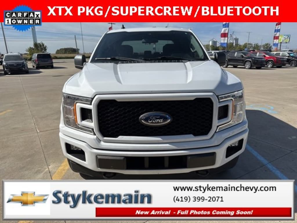 2020 Ford F-150 XL STX SUPERCREW BLUETOOTH Oxford White ** CALL TODAY 419-399-2071 **, ** USB ADAPTER **, ** BLUETOOTH **, ** CLEAN VEHICLE HISTORY...NO ACCIDENTS **, ** ONE OWNER **, ** ASK US HOW YOU CAN EARN $50 JUST TO TEST THIS VEHICLE! **, *** COMPLEMENTARY 3 MONTH - 3,000 MILE POWERTRAIN WARRANTY ***, F-150 XL STX SUPERCREW BLUETOOTH, 4D SuperCrew, 10-Speed Automatic, 4WD, Oxford White. TEST DRIVE ANY USED VEHICLE AND RECEIVE $50. DRIVE A VEHICLE GET $50.NO PRESSURE TO PURCHASE. ACT NOW. ONE GIFT CARD PER HOUSEHOLD PER YEAR.CALL 419-399-2071 TODAY FOR YOUR APPOINTMENT.GO TO WWW.STYKEMAINCHEVY.COM AND FILL OUT YOUR TEST DRIVE FORM. MUST BRING PRINTED FORM WITH YOU TO RECEIVE $50. DON'T FORGET... MOST OF OUR PREOWNED VEHICLES COME WITH A 3 MONTH - 3,000 WARRANTY... FREE OF CHARGE. CONTACT US TO FIND OUT IF THIS ONE QUALIFIES.Stykemain Chevrolet in Paulding, OH is closer than you think. Just take exit 13 off new US 24 to US 127 South. Driving time to Stykemain Chevrolet: Defiance = 15 minutes, Van Wert = 18 minutes, Bryan = 22 minutes, Lima = 42 minutes. Ft Wayne = ONLY 39 MINUTES! COME CHECK US OUT. Visit us online at STYKEMAINCHEVY.COM Proudly serving: Paulding, Defiance, Fort Wayne, Van Wert, Findlay, Toledo, Delphos, Detroit, Indianapolis, South Bend, Elkhart, and all of greater Ohio, Michigan and Indiana.