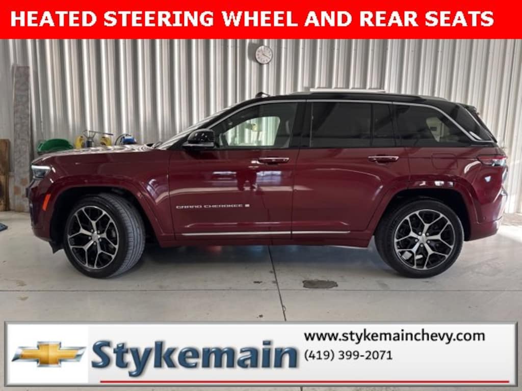 2022 Jeep Grand Cherokee Summit Reserve SUNROOF 5.7L V8 4WD HEADS UP DISPLAY Velvet Red Pearlcoat ** CALL TODAY 419-399-2071 **, ** ASK US HOW YOU CAN EARN $50 JUST TO TEST THIS VEHICLE! **, ** SUNROOF **, ** BLUETOOTH **, ** LEATHER **, ** HEATED AND VENTILATED SEATS **, ** APPLE CARPLAY/ANDROID AUTO **, ** REMOTE START **, ** NAVIGATION **, ** 4WD **, ** POWER REAR LIFTGATE **, ** CLEAN VEHICLE HISTORY...NO ACCIDENTS **, ** REMAINDER OF FACTORY WARRANTY **, ** WI FI **, ** USB ADAPTER **, Grand Cherokee Summit Reserve SUNROOF 5.7L V8 4WD HEADS UP DISPLAY, 4D Sport Utility, HEMI 5.7L V8 Multi Displacement VVT, 4WD, Velvet Red Pearlcoat, Global Black Leather, 19 Speakers High Performance Audio, 950 Watt Amplifier, Active Noise Control System, ADV Protech Group IV, Deluxe Headliner, Front Passenger Interactive Display, Heads-Up Display, Navigation System, Night Vision w/Pedestrian-Animal Detection, Palermo Leather Door Trim, Palermo Leather Seats, Quick Order Package 25U Summit Reserve, Rearview Autodim Digital Display Mirror, Summit Reserve, Summit Reserve Badge, Ventilated Rear Seats, Wheels: 21 x 9 Machined Face/Painted Aluminum. TEST DRIVE ANY USED VEHICLE AND RECEIVE $50. DRIVE A VEHICLE GET $50.NO PRESSURE TO PURCHASE. ACT NOW. ONE GIFT CARD PER HOUSEHOLD PER YEAR.CALL 419-399-2071 TODAY FOR YOUR APPOINTMENT.GO TO WWW.STYKEMAINCHEVY.COM AND FILL OUT YOUR TEST DRIVE FORM. MUST BRING PRINTED FORM WITH YOU TO RECEIVE $50. DON'T FORGET... MOST OF OUR PREOWNED VEHICLES COME WITH A 3 MONTH - 3,000 WARRANTY... FREE OF CHARGE. CONTACT US TO FIND OUT IF THIS ONE QUALIFIES.